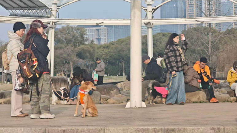 与此同时,社会对宠物的接纳度,也在宠物经济热潮中大幅提升。春节假期游客众多,携宠团队频繁与人流交汇,不少带娃家长面对小狗,态度多是好奇与喜爱,而非恐惧排斥。