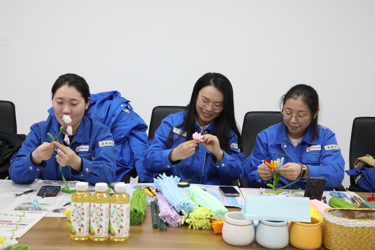 在第116个“三八”国际劳动妇女节即将到来之际,吉林石化化肥厂工会以“巾帼建新功,聚力启新程”为主题,组织开展“巧手慧心扮家园”特色活动,女工们用巧思妙手将彩色扭扭棒变成争奇斗艳的“花海”,在欢声笑语中为生产装置染上无限春色。